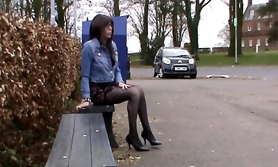 Mooie crossdresser heerlijke gerokte billen loopt buiten