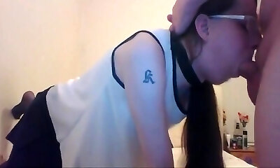Dark-haired crossdresser in black stuff was blowing fuck-stick in the hotel
