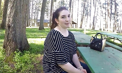 Busty Russian swallows cum after risky outdoor fuck - POV