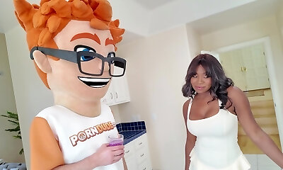 Jenna Starr having joy while sucking a black fuck-stick in the pool