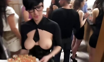 Sexy lady in the bar and her awesome amateur latex solo to enjoy