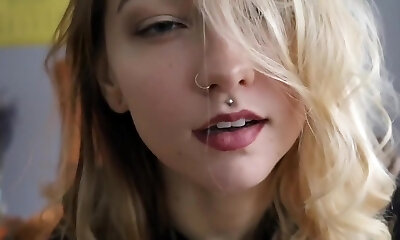 Lusty ash-blonde Blue Angel plays with her lollipop