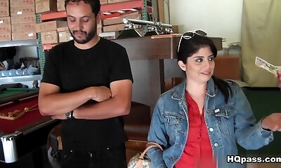 Shop nymph goes home with a hunky customer and fucks him