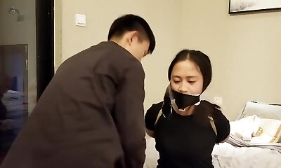 Dark skinned tied up slim nympho gives solid deepthroat blowjob