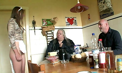 Wanton brunette doxy gets her slack titties and demolished snatch vacuumed