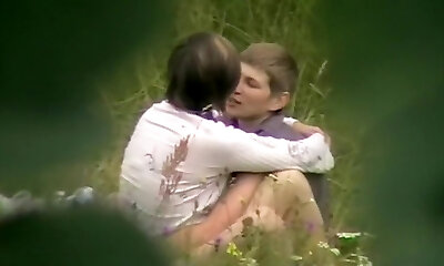 Lesbian ladies have a three-way outdoors