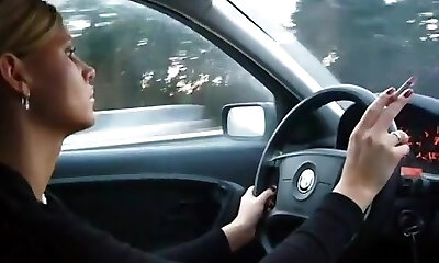 Dick craving mature chick fellates a guy's fuckpole in a car