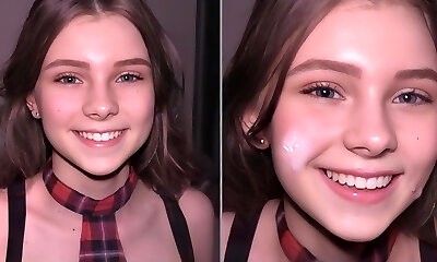 Hot student does a deep hatch blowjob and gets a big dosage of cum on her face