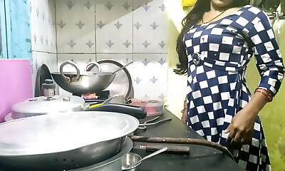 partie.1, belle-soeur indienne cuisinant dans la cuisine et baisant avec son demi-frère