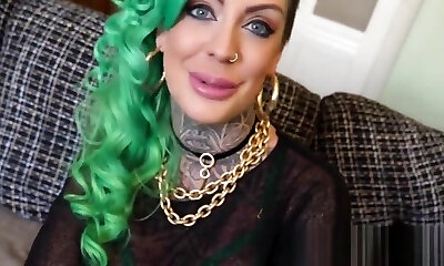 cougar tatouée montre ses piercings à la chatte