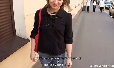 le miel appétissant montre son cul délicieux en public et chevauche la bite de nick moreno à l'intérieur
