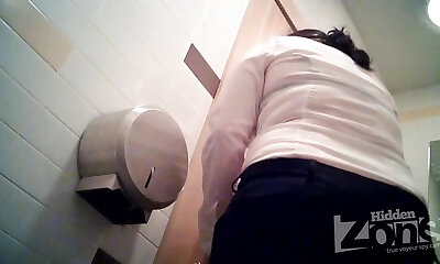 une caméra cachée attrape plusieurs demoiselles dodues qui pissent dans les toilettes