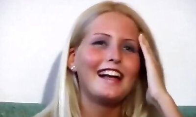 A hot blonde German honey gets humped by three loaded and hard cokcs