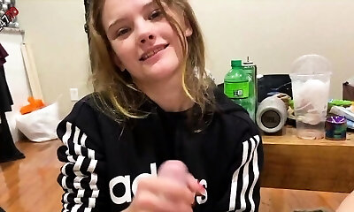 Amateur Homemade - Stepmom nymph with smallish tits masturbation while give an epic handjob to her boyfriend