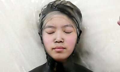 Shiny Rubber Dress Slut Pascal Drenched in Piss Blowing Cock