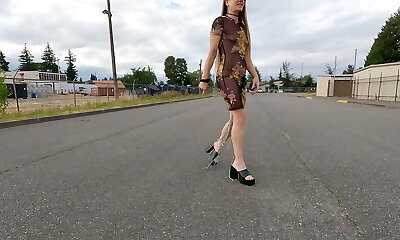 Longpussy, Dragging over a Kilogram (2.3 lbs) of chain off my Poon in a Sheer Dress out for a Walk.