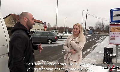 Busty blonde MILF gonna buy some water but ends up pulverizing in the van