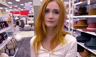 Cute redhead doll Cherry surprises a guy with a nice blowjob