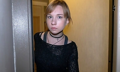 My horny stepsister was going to go to her first job in an overly revealing clothing.
