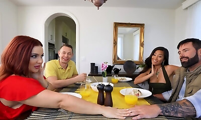 Pajama soiree gets turned into a really mischievous swinger sex with Alex Coal