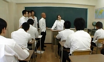 Jaw-dropping Japanese teacher blows a bunch of cocks