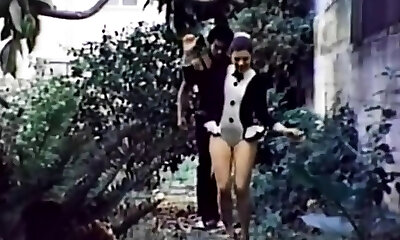 Hot vintage brunette sexy babe blows dick and bends over